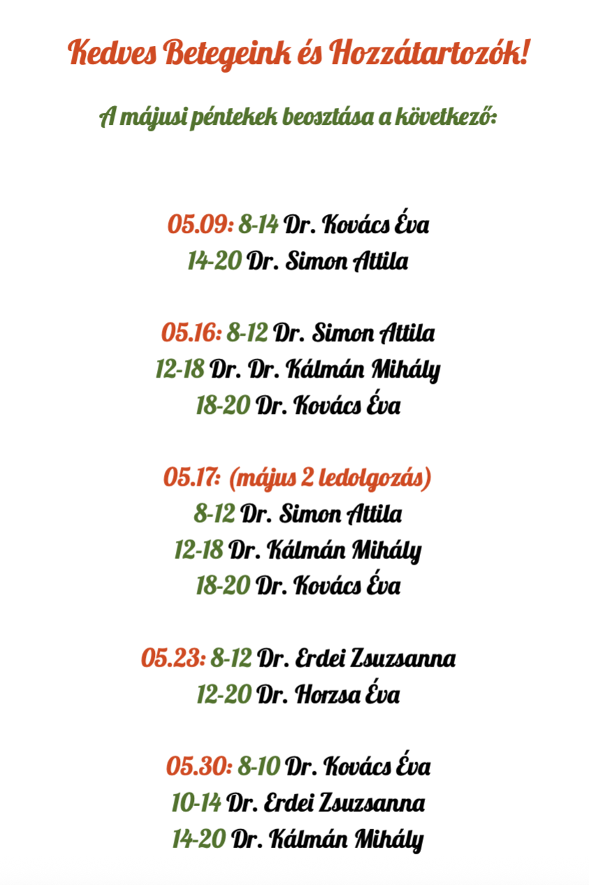 Orvosaink rendelési ideje